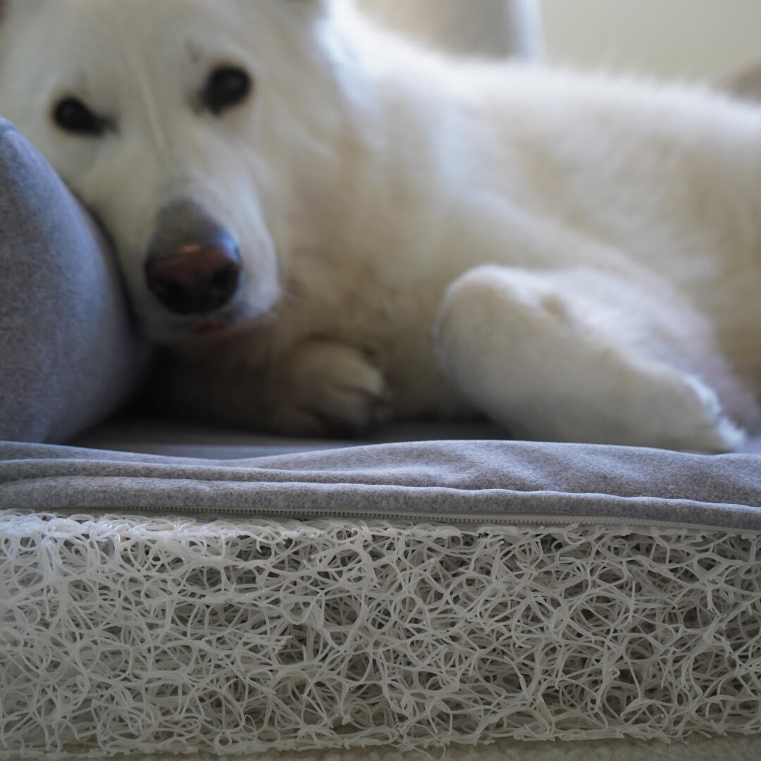 Ever notice that your dog prefers the cool kitchen floor rather than their dog bed? Most dog breeds enjoy a cool environment to rest their body to cool them down after a long day at barking at the neighbors. Our CoolCloud™ cushion is 99.9% breathable, allowing cool air to enter the bottom of the bed and keep your dog cool all night and day. Traditional polyurethane foam's low breathability rating traps hot air and cause your dog to warm up, potentially leading to a decrease in sleep quality. This can also happen in low-quality human beds that use a similar type of polyurethane foam, giving humans the "sweats" at night.